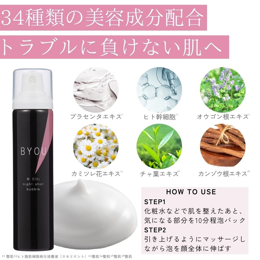 BYOU ダブルCO2ナイトショットバブル ダブル生炭酸 泡パック & 美容液 (60回分) 生ビタミンC レチノール 部分パック 洗い流し不要 毛穴 くすみ
