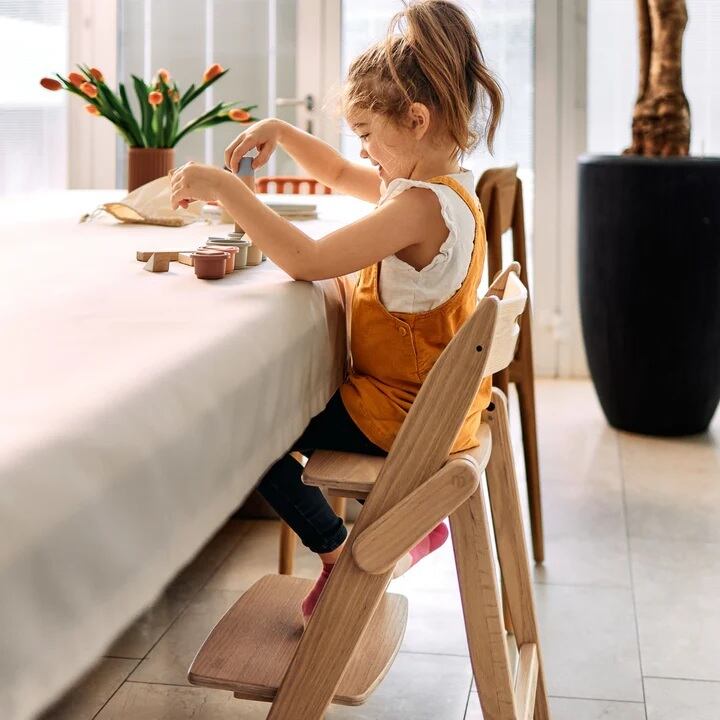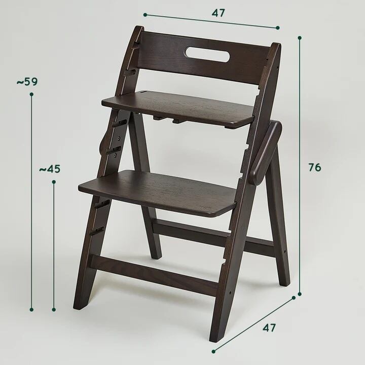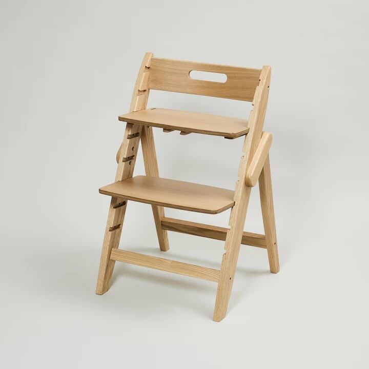 シンプルなパーツ構成と工具不要で組み立てることができるハイチェア、イッピー。